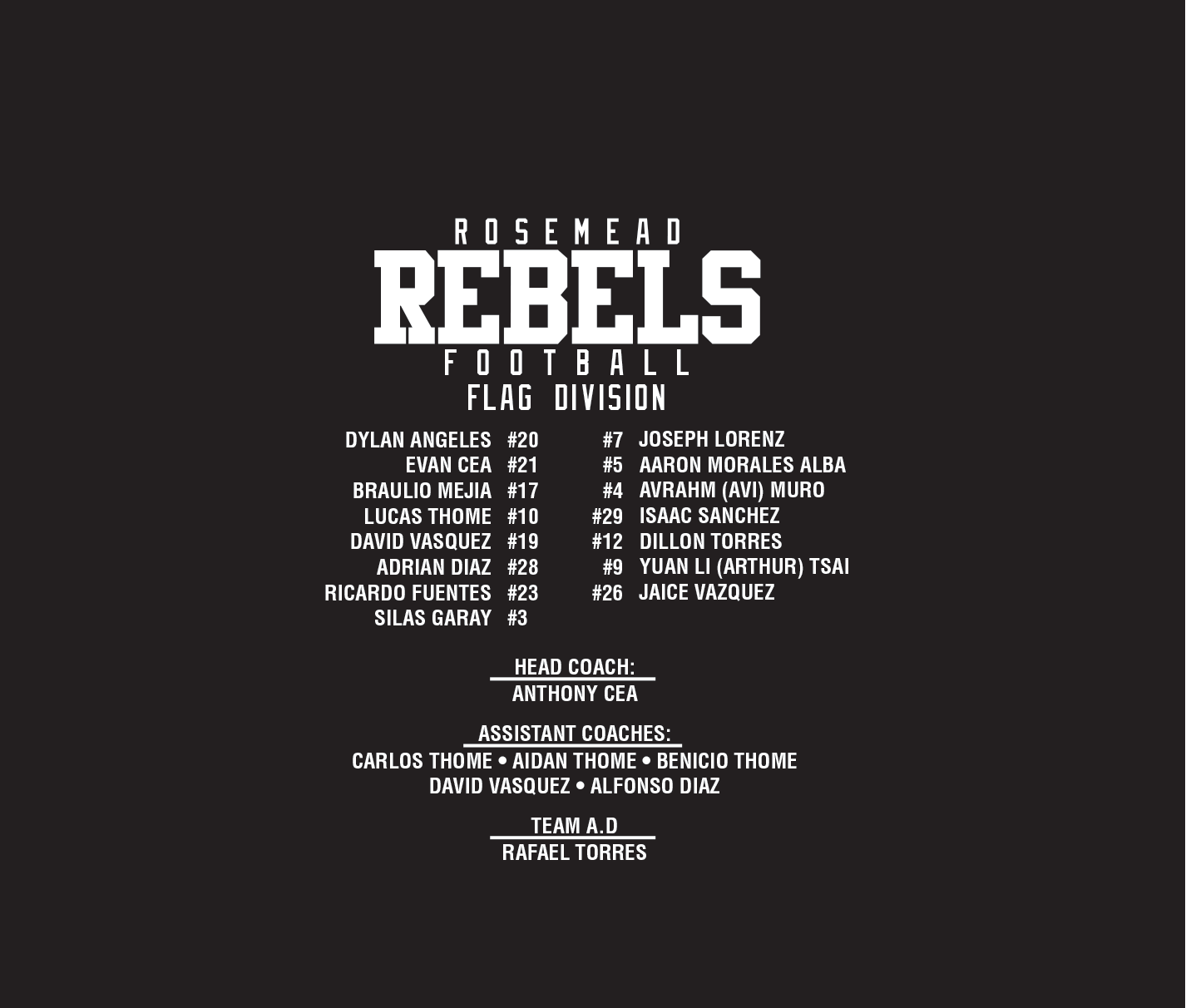 COACH CEA FLAG TEAM 2025 ONLY -ROSEMEAD REBELS - COTTON BLACK HOOD WITH ROSTER